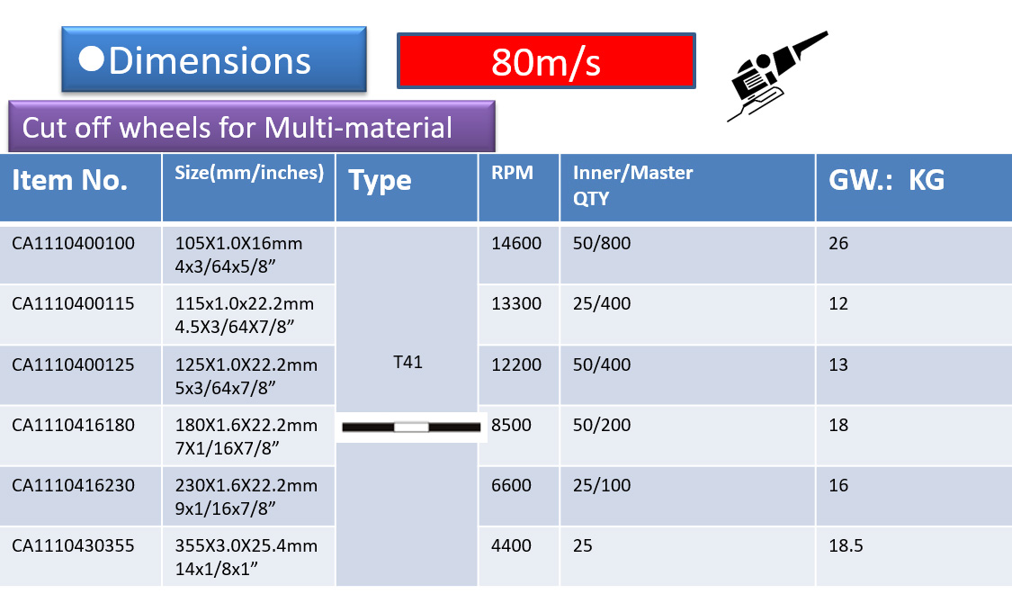 Application:Cutting for Metal ,steel, inox, stainless steel ,stone ,tile ,PVC, fiber glass ,