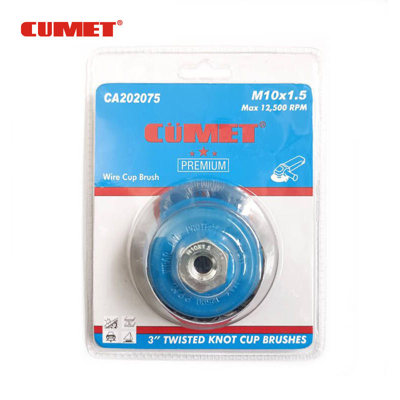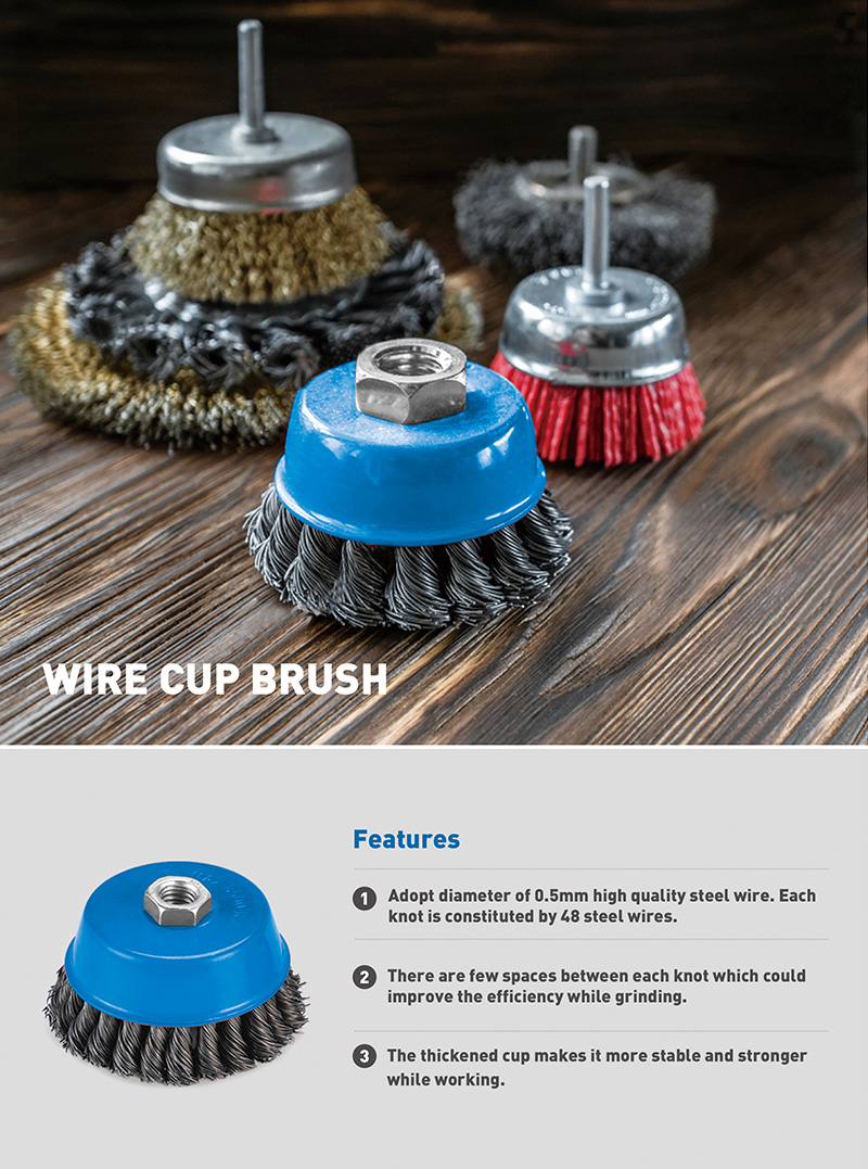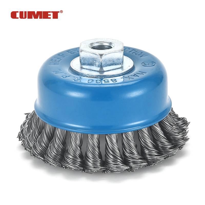 4. TWISTED KNOT CUP BRUSH is normally used for processing large surface of metal, such as polishing weld, rust removing and deburringwith advantage of time and effort saving.