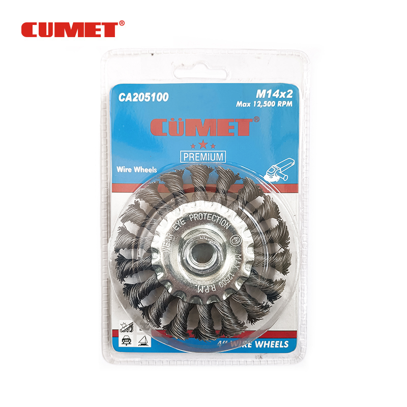 4.TWISTED KNOT CUP BRUSH is normally used for processing large surface of metal, such as polishing weld, rust removing and deburringwith advantage of time and effort saving.