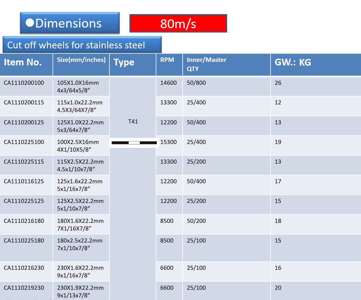 NAME: CUT-OFF WHEELS FOR STANLESS STEEL